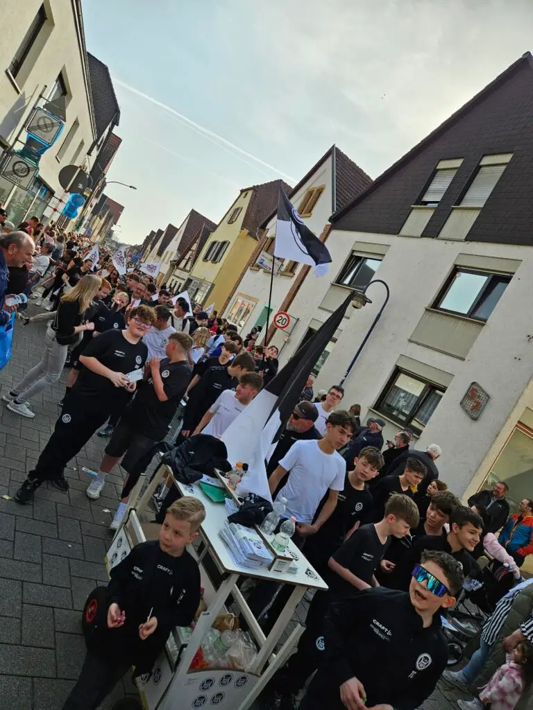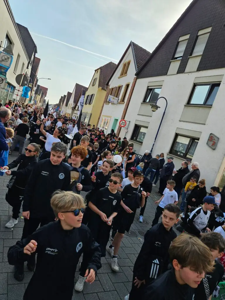 Den Anfang innerhalb unserer Zugnummer machten unsere jüngsten Fußballerinnen und Fußballer. Stolz präsentierten sich die Kleinsten des Vereins und wurden von den Zuschauern mit viel Applaus empfangen. Dahinter folgten – nach Altersklassen aufsteigend – die weiteren Jugendmannschaften des Vereins, die gemeinsam ein beeindruckendes Bild abgaben.