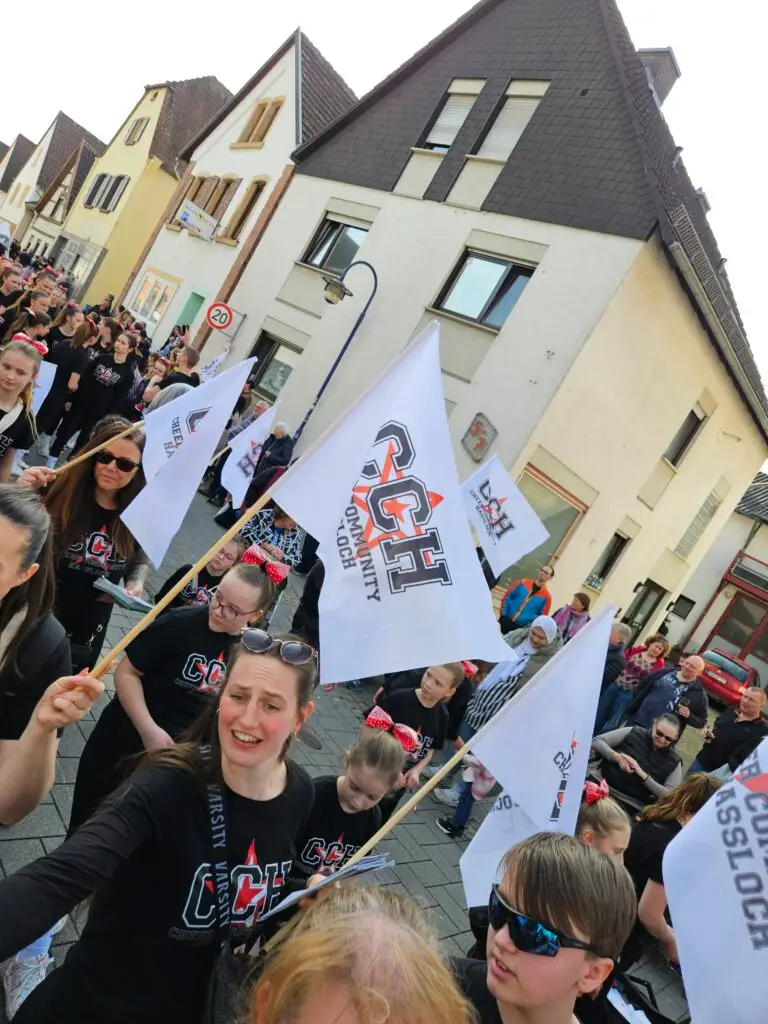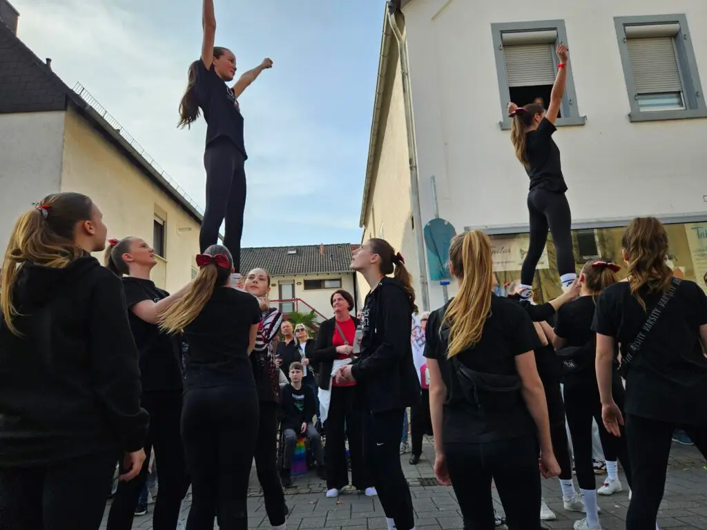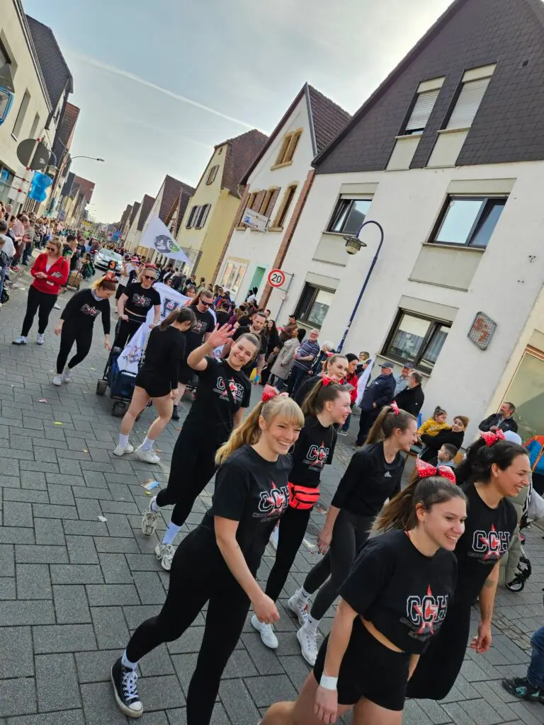 Im Anschluss begeisterten unsere Cheerleader das Publikum. Mit ihren faszinierenden akrobatischen Stunts, viel Energie und strahlenden Gesichtern sorgten sie entlang der Strecke immer wieder für staunende Zuschauer und große Begeisterung.