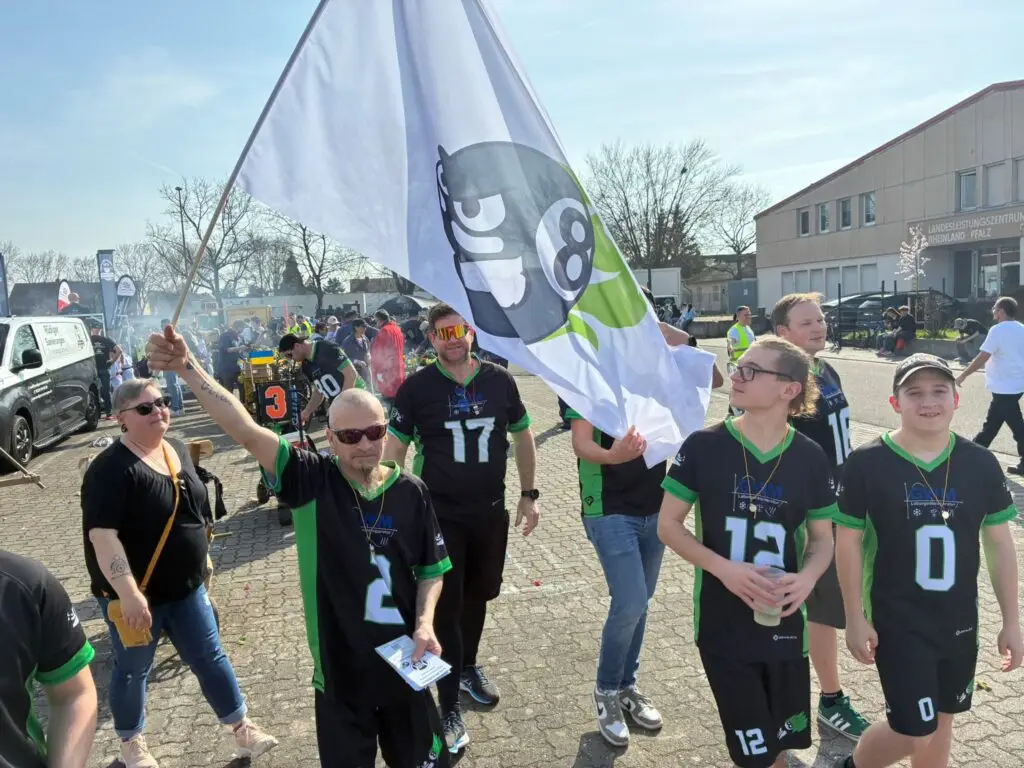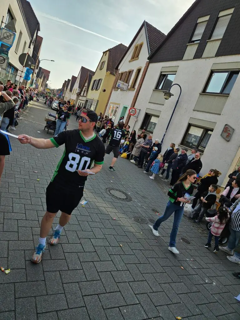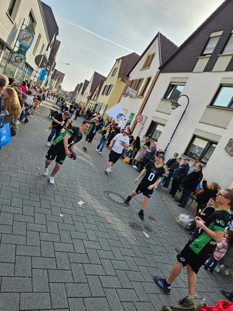 Auch optisch war unser Verein nicht zu übersehen. Alle Teilnehmer waren in einheitlicher Vereinskleidung unterwegs: Die Fußballer in Schwarz und Weiß, die Cheerleader in Schwarz und Rot und die Flagfootballer in Schwarz und Grün. Dieses farbenfrohe und zugleich geschlossene Erscheinungsbild kam bei den Zuschauern sehr gut an und sorgte für einen starken Auftritt des Vereins.