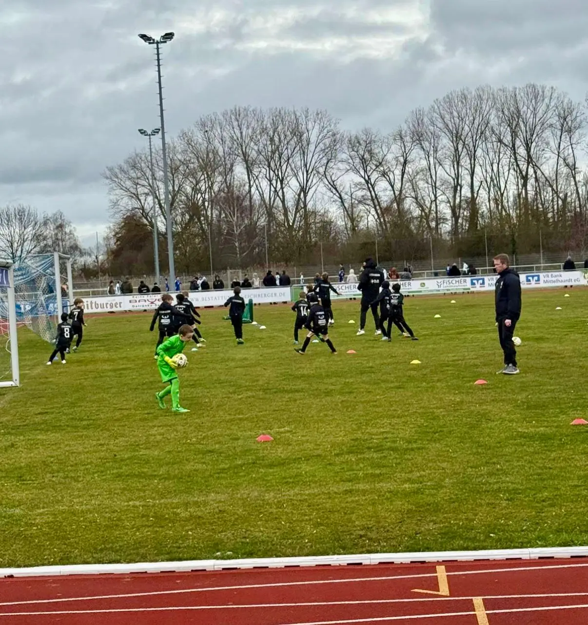 Grafik mit dem Text '1. Mannschaft Game Day' und einem Spieler in Fußballkleidung.